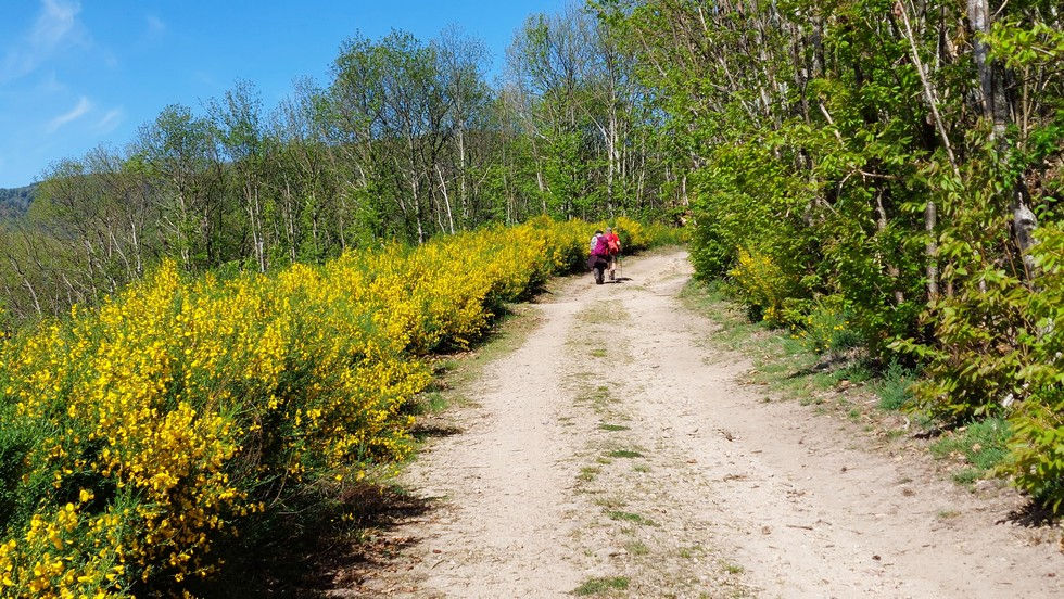 Les beaux vallons ardéchois comme décor pour cette magnifique randonnée dominicale. Sous la houlette de Bernard C qui a proposé ce parcours inédit au départ du joli petit village de Vaudevant, sept marcheuses et trois marcheurs ont effectué avec un grand plaisir les 15.5 km et 480 m de dénivelé en appréciant les chemins bordés de champs fleuris et de genêts odorants